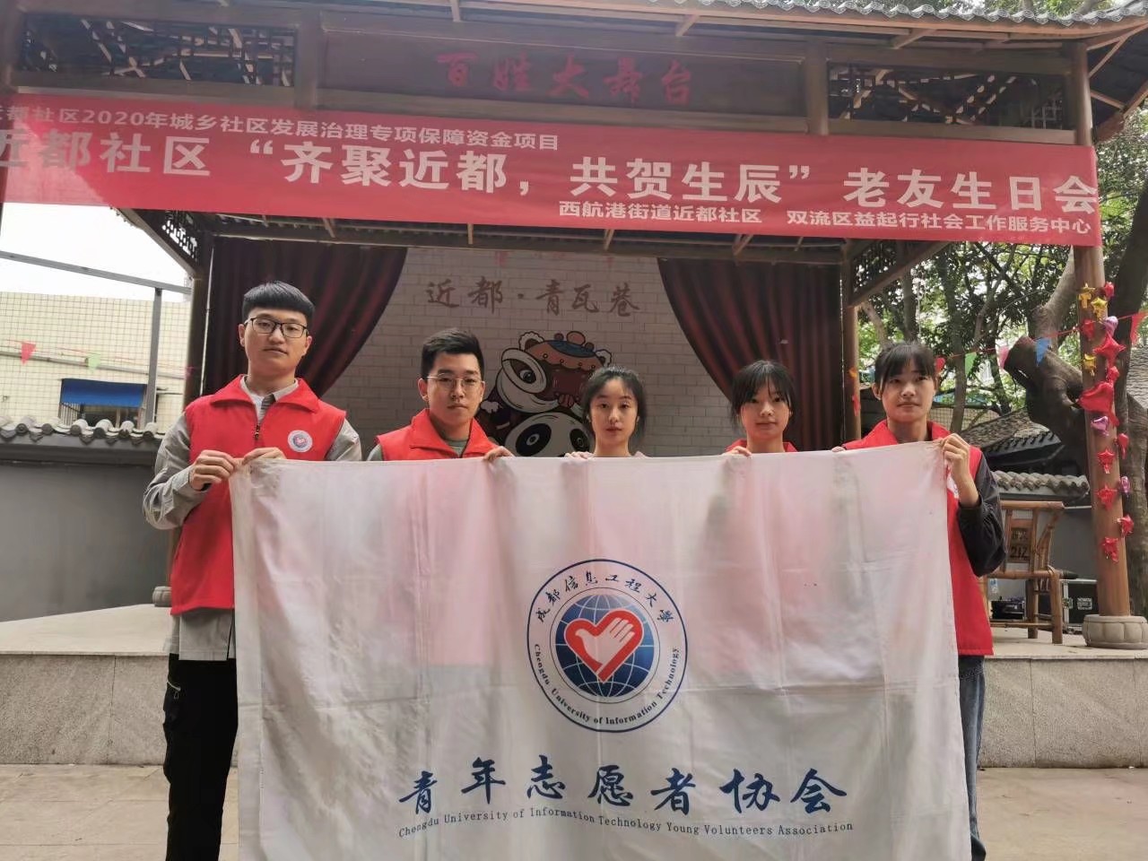 伟德国际1946源于英国青年志愿者协会控制分会的志愿者们于4月22日中午在校门口乘坐公共交通工具抵达双流区西航港街道西航港近都社区,走进社区开展为老人庆生的活动,传递自己的爱心。