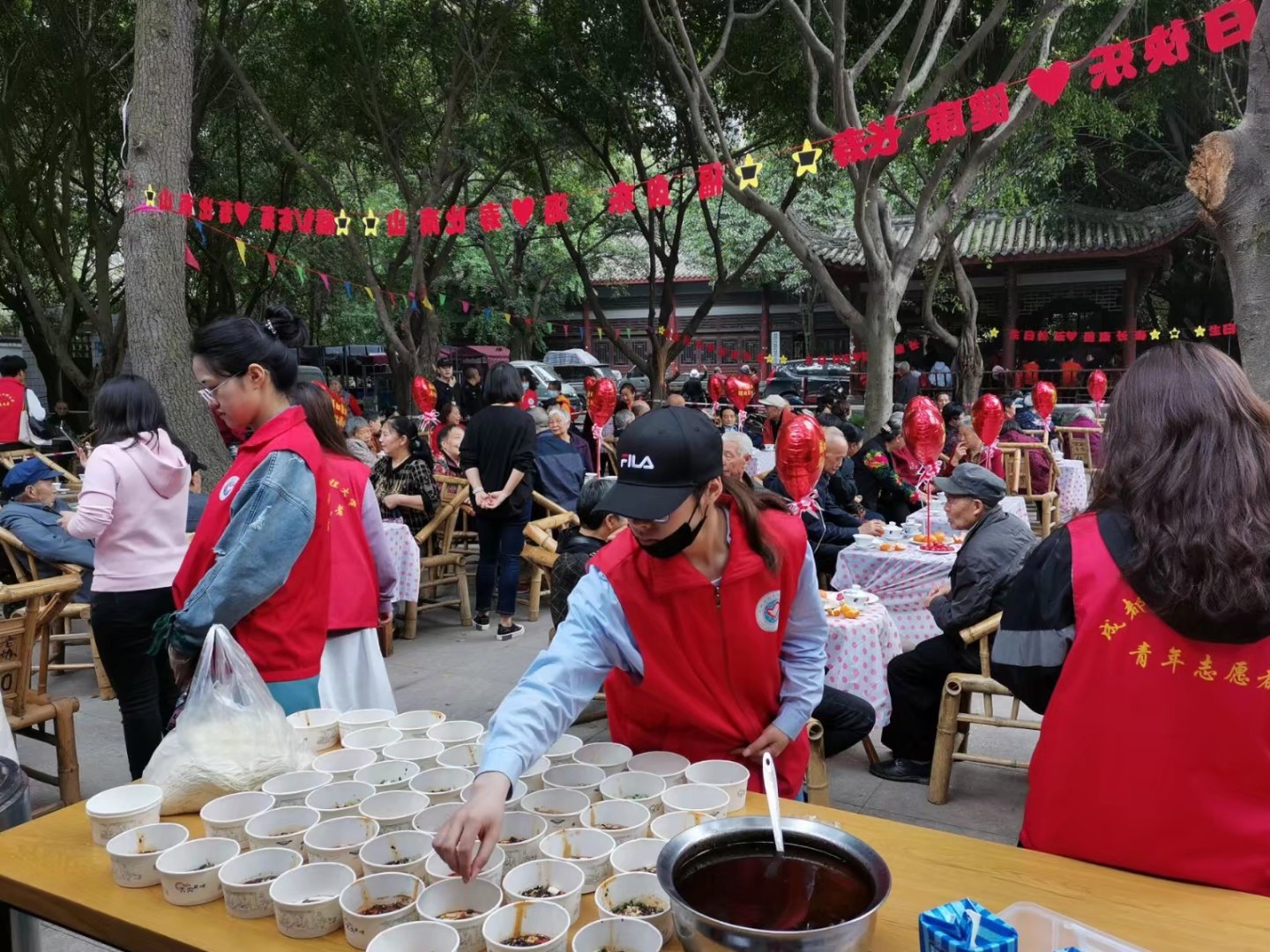 在当今社会,老人们对物质生活的需求相对递减,但精神方面的需求却越来越迫切,因此青年志愿者协会控制分会的志愿者们走进社区,为老人庆生,去满足老人们的精神方面的需求。活动前期我们利用官方QQ,微博,微信公众号(志愿四川),进行了大量宣传,招募志愿者,宣传我们活动的意义,让更多人了解老人的生活现状,为社区老人庆生,为老人传递温暖。4月22号下午一点,全体志愿者们到达社区,在社区指导人的安排下,布置一个大型的庆生现场。先帮忙搬了7个长桌子,分装社区给老人们的生日礼物,然后在舞台演员主持人就位后,干事们就带领老人入场坐下,随后在观看节目的时候帮忙分发长寿面,还为每桌都放了水果。在孩子们为老人奏乐的节目后,让这个月过生的老人上台许愿吹蜡烛,最后齐唱生日歌过后,老人们拍大合照,并发放礼品。至此,本次青年志愿者协会“社区共庆生,爱心永传递”活动圆满结束。