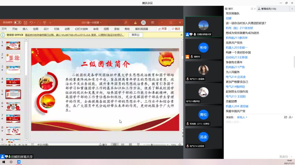在田媛老师的精彩讲解和同学们的积极参与下,2021~2022年度伟德国际1946源于英国控制工程学院二级团校开班仪式圆满结束。