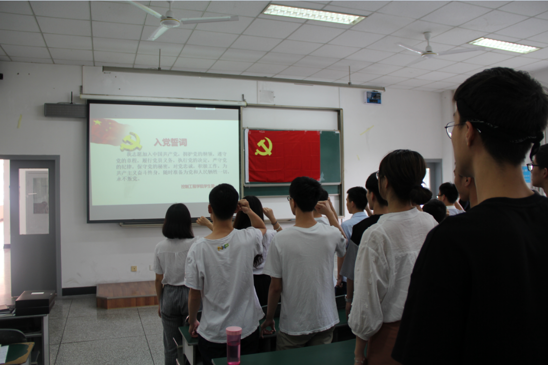 为深入学习党的十九大精神,进一步提高学生党员的党性修养,5月17日下午,控制工程学院学生党支部开展了“温故而知‘心’——重温入党誓词”宣誓活动。活动在庄严的《国际歌》声中开始,全体学生党员面对着鲜红的党旗,高举右拳,庄重宣誓,表达对党和人民的庄严承诺以及为党的事业奋斗终生的决心。