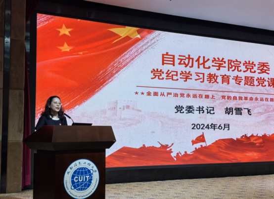 胡雪飞结合实际情况,指出了党员在党纪学习中可能存在的一些认识误区,并强调“纪严于法,纪在法前”。她还围绕新修订的《中国共产党纪律处分条例》主要内容,通过真实的警示案例,教育引导全体党员师生要以党纪学习教育为契机,进一步加强党纪学习、增强纪律观念,强化工作、学习、生活各方面的自省自律意识,并在今后保持赶考心态,切实做到心有所畏、言有所戒、行有所止。
