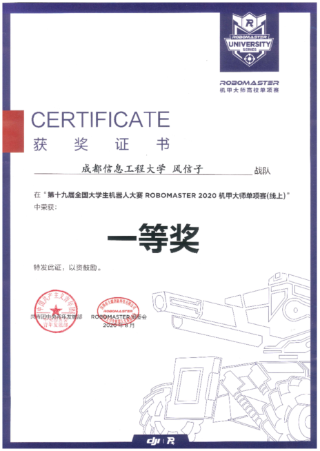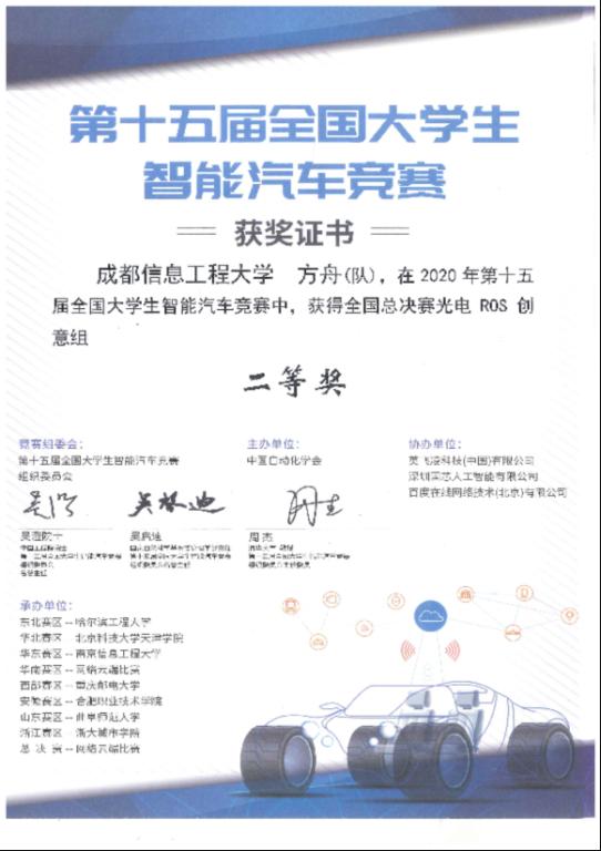 “风信子”战队在8月21日结束的RoboMaster机甲大师赛对抗赛&单项赛线上评审中,从308所高校的参赛队中脱颖而出,荣获全国总决赛一等奖。“方舟”战队也在8月26日结束的第十五届全国大学生智能汽车竞赛(原飞思卡尔智能车竞赛)光电ROS创意组决赛中,与139个参赛队伍同台竞技,荣获全国总决赛二等奖。