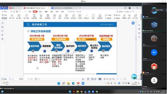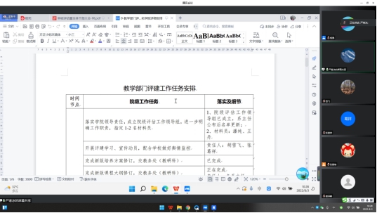 接着,张葛祥补充了几点关于审核评估的注意事项。一是学院所有专业都要参与审核评估,审核评估与全院每位老师息息相关;二是各个系在假期应分别召开审核评估会议,传达此次专项会议精神并作好会议记录;三是对9月中旬的审核评估工作汇报作了详细安排部署,确定了工作汇报小组成员、工作汇报各项任务及相应时间节点;四是下一周将对各系2022版的培养方案进行进一步审定。