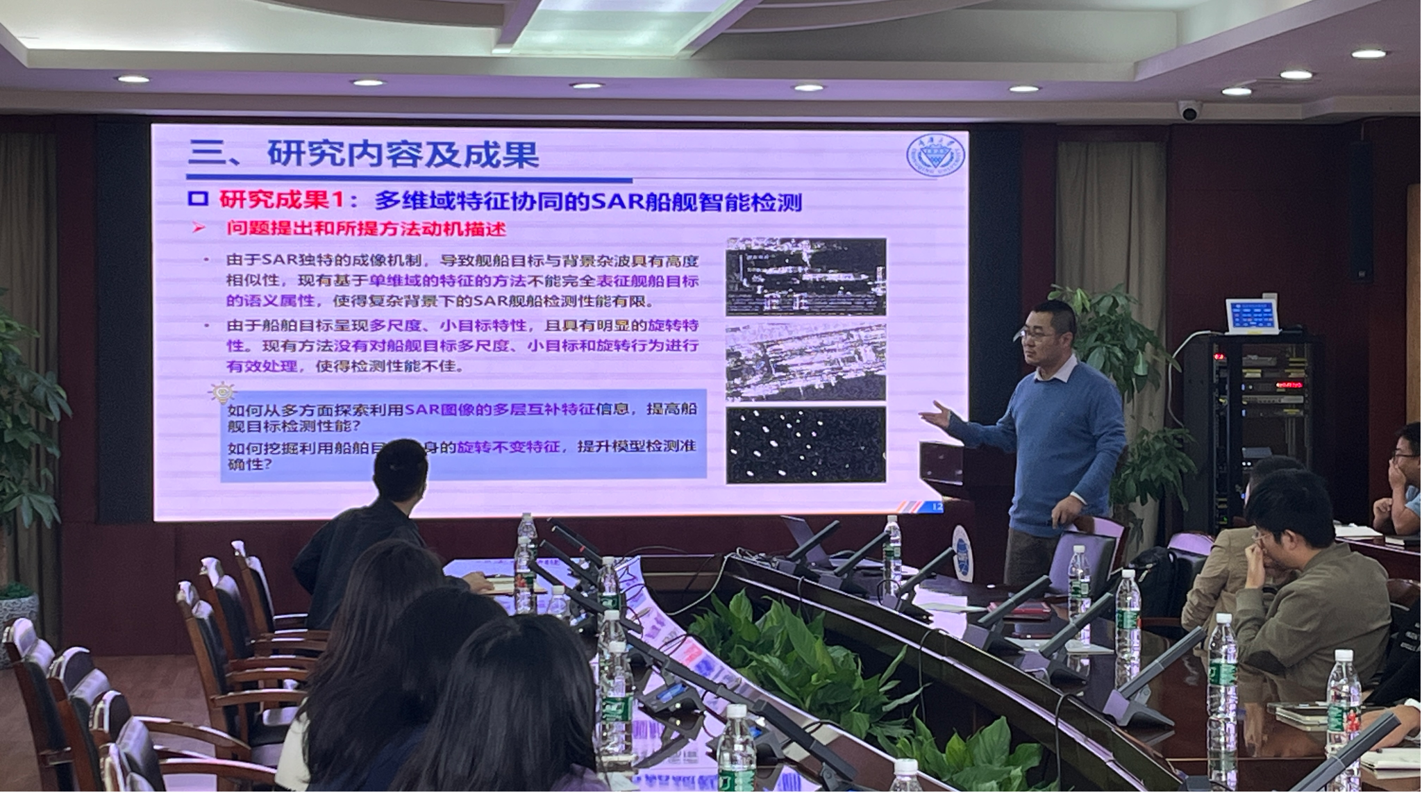 李东在主题报告中,对SAR水面目标检测相关研究工作从问题背景、如何设计解决方案到方案验证方面进行了详细的介绍,拓展了研究生视野的同时也对研究生课题研究方法提供了指导。