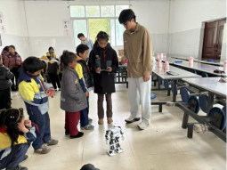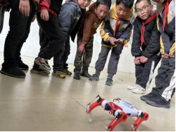 在道孚县甲斯孔乡,科普团队展示了我国自主研发的智能机器人和四足机器狗。孩子们在老师的指导下,通过语音指令操控机器狗完成行走、避障等动作,并参与编程小游戏,亲手为机器人设计简单指令。同时用简单易懂的方式向学生讲解传感器、电机控制等核心技术,帮助青少年理解智能设备的运作原理。