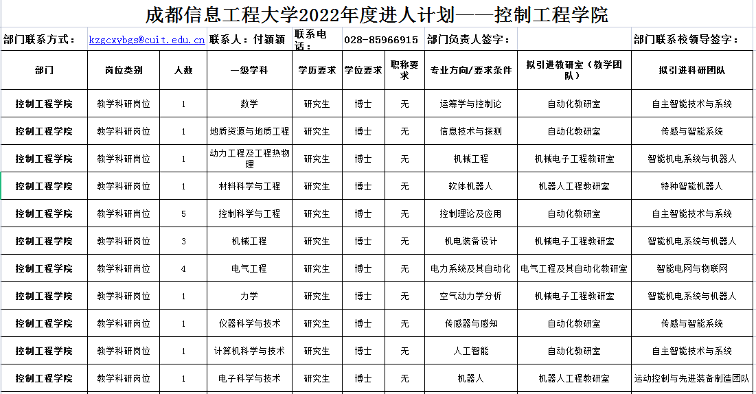 咨询电话:028-85966915(付老师) 学院邮箱:kzgcxybgs@cuit.edu.cn