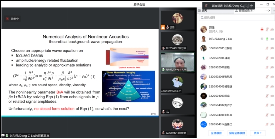 12月06日下午,国际超声成像与信号处理专家Prof. Dong C. Liu应邀在为我院部分研究生和教师进行了在线学术讲座和交流。