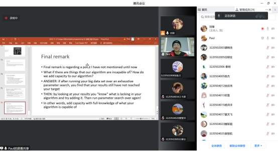 12月07日下午,国际图像处理与深度学习专家Dr. Paul Si-Yao Liu应邀在为我院部分研究生和教师进行了在线学术讲座和交流。