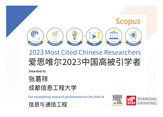 2024年3月27日,爱思唯尔(Elsevier)重磅发布2023“中国高被引学者”(Highly Cited Chinese Researchers)榜单。我校伟德国际1946源于英国张葛祥教授连续第四次入选。
