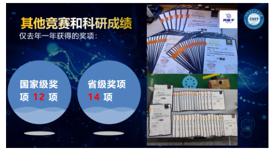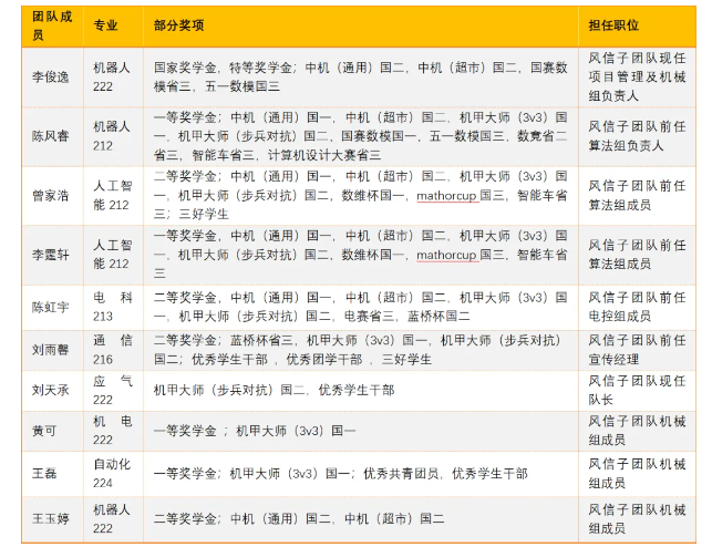 在RoboMaster机甲大师高校联盟赛中,风信子团队斩获国家一等奖二等奖三等奖若干项。除此之外,团队成员还踊跃参加其他学科竞赛,在蓝桥杯、数学建模、数学竞赛等比赛中也获得了不错的成绩。并且,团队成员在奖学金及荣誉称号方面也可以说是硕果累累。